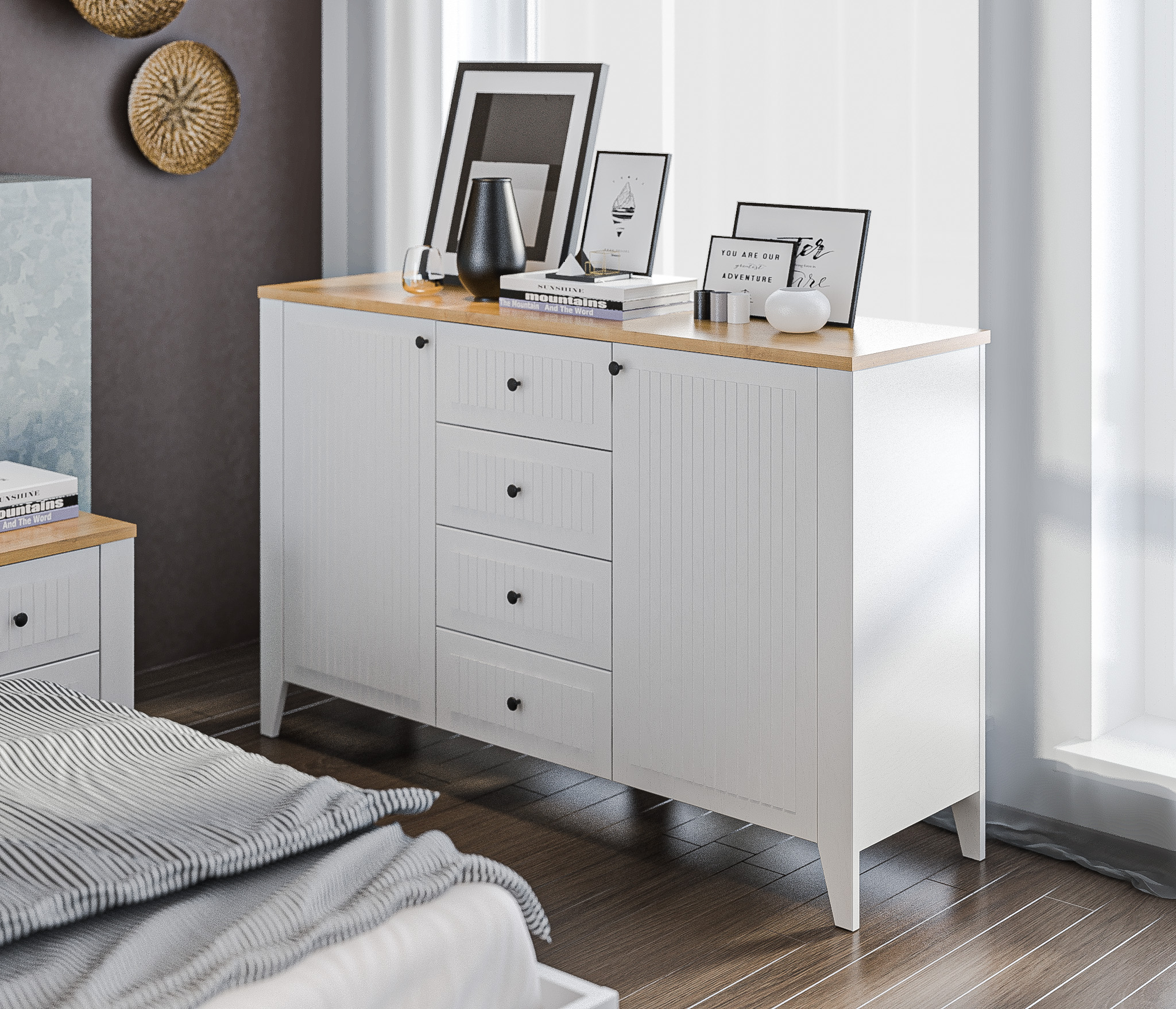 Материал корпуса: ЛДСП цвет Белый Альпийский, Дуб Гамильтон натуральный.