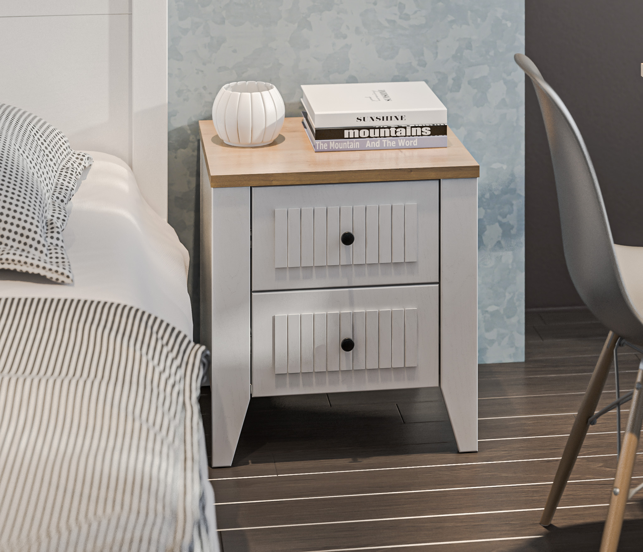 Модульная система Монтана создана для ценителей стиля. Белый цвет мебели зрительно расширяет границы комнаты и делает интерьер светлее, а текстура дерева создает атмосферу уюта и близости к природе. Комбинируя элементы нашей новой модульной коллекции, вы сможете создать для себя неповторимый и комфортный интерьер.