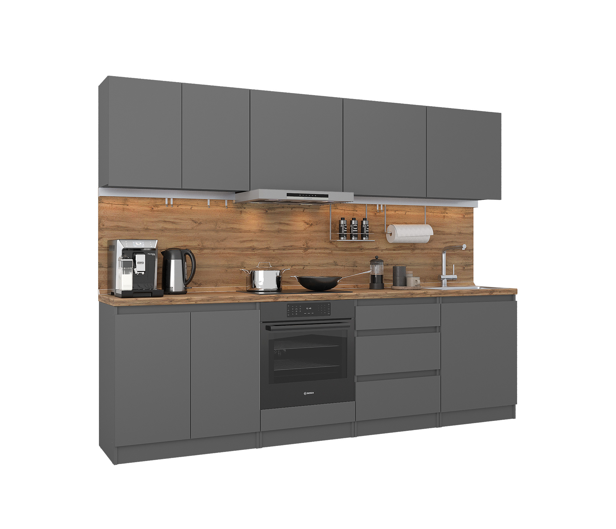 Кухонный гарнитур Леон прямой 260 см, диамант серый Код 00000334971
