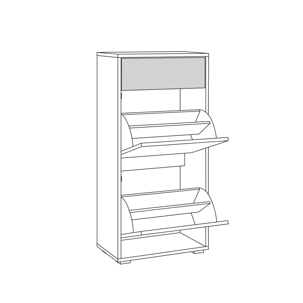 Стильная тумба для обуви высокая Куба оборудована выдвижным ящиком для мелочей и двумя нишами для обуви за откидными фасадами.