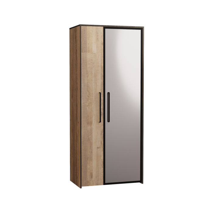 Распашной шкаф Трувор 13.204.01 — отличное решение для организации пространства с интерьером в стиле лофт. Внутреннее наполнение подразумевает отделение со штангой для вешалок и полки для хранения одежды. Дверцы оснащены петлями с доводчиками, которые обеспечивают плавное и бесшумное закрытие. Фасад дополнен зеркалом в полный рост, что позволяет в деталях оценить подобранный образ и визуально расширить пространство.