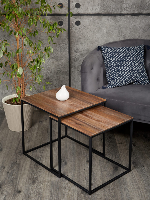 Удобный комплект из 2х квадратных столиков представляет собой дизайнерскую новинку, которая станет фокусным элементом в вашем интерьере. Длина × Ширина × Высота большой столик: 500х500х510мм. Длина × Ширина × Высота маленький столик: 450х450х460 мм. Вес товара, кг: 7,9. Материал столешницы: МДФ. Материал подстолья: Металл