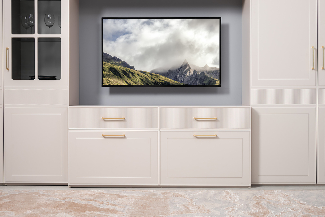 Петли с доводчиками, полное выдвижение ящиков, выдвижная штанга в шкафу для одежды и съемные полки делают использование максимально комфортным.