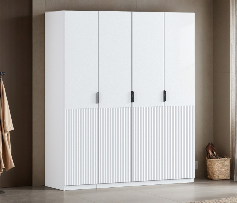 Шкаф четырехдверный Макс 2000 мм, вариант №2 (ЛДСП/МДФ) (Белый)