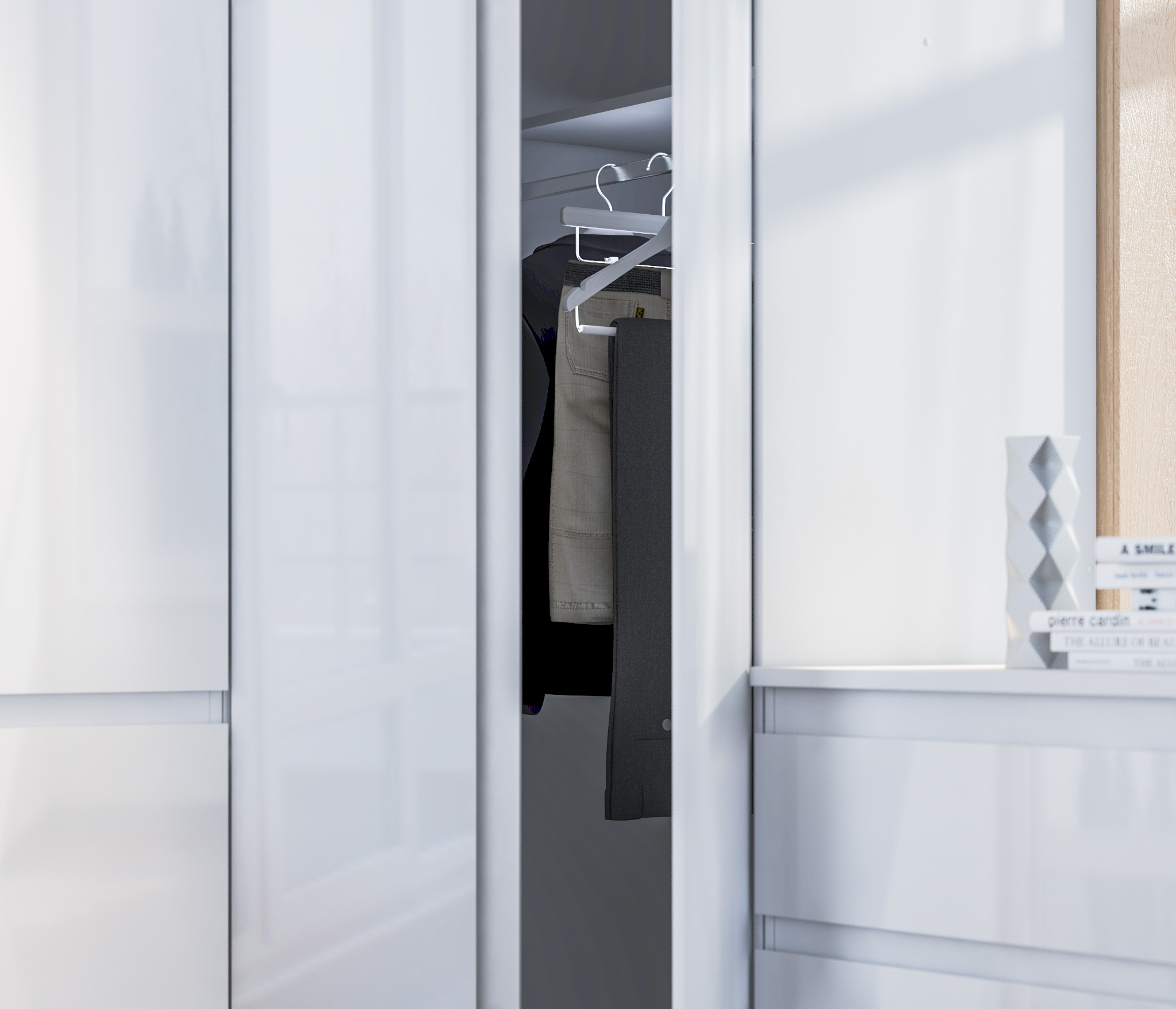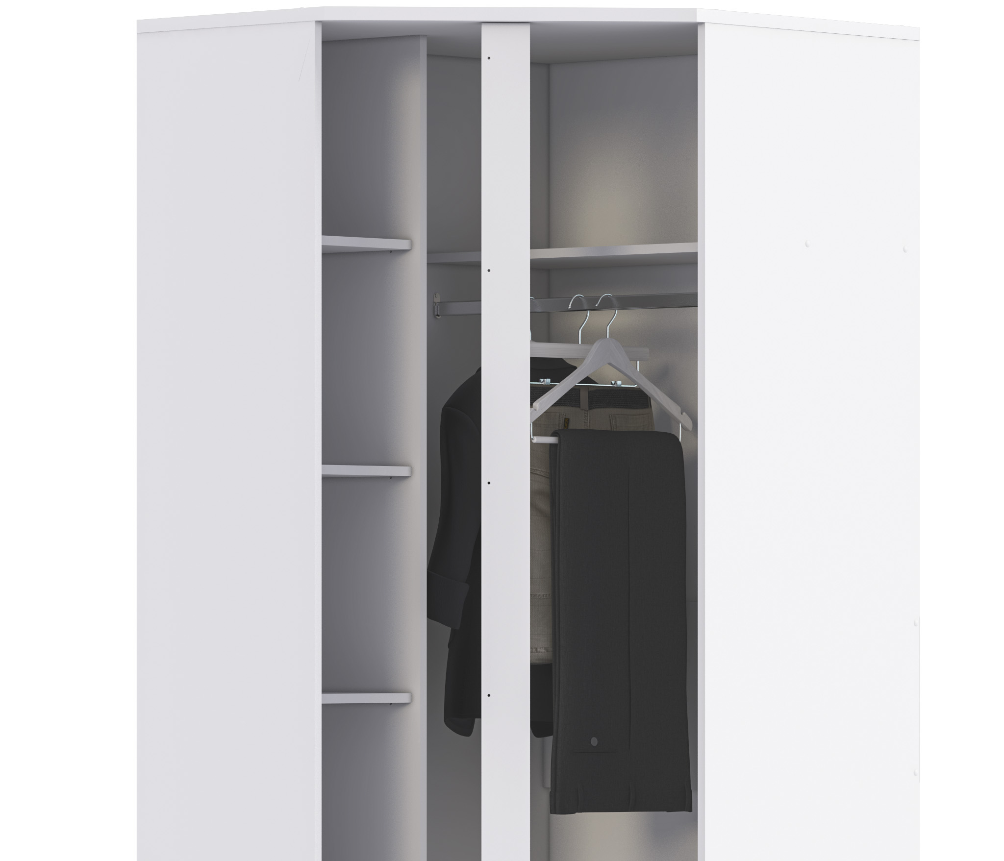 отделений: одно с полками для белья, другое- со штангой для одежды и верхней полкой