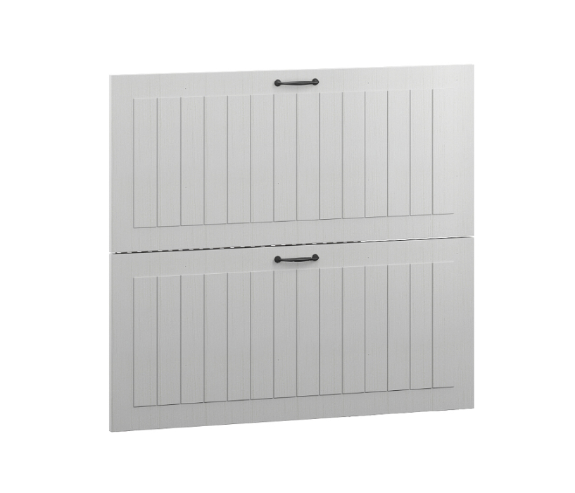 Две панели для ящиков шкафа. Они изготовлены из прочной и экологически чистой прессованной древесины. Панели устойчивы к воздействию воды и пара. Каждая панель дополнена двумя ручками в классическом стиле.