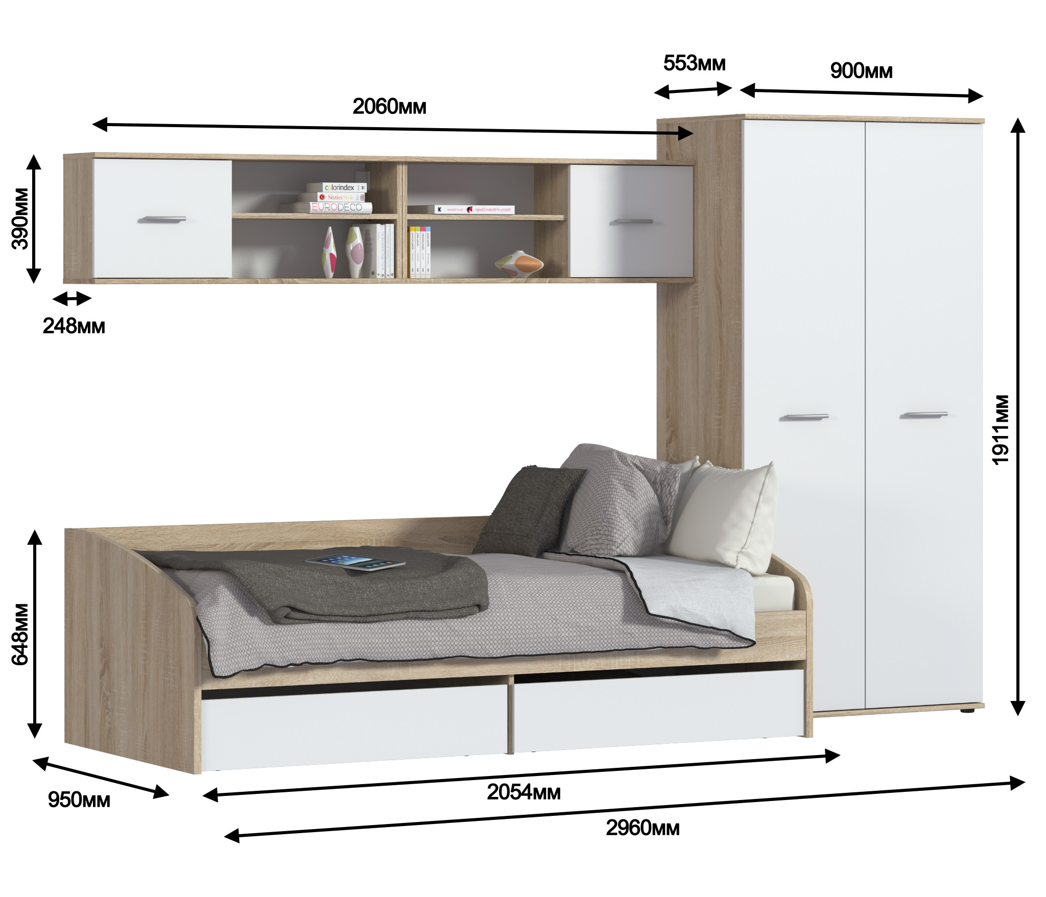 Кровать: ДхВхГ 2054х644х950