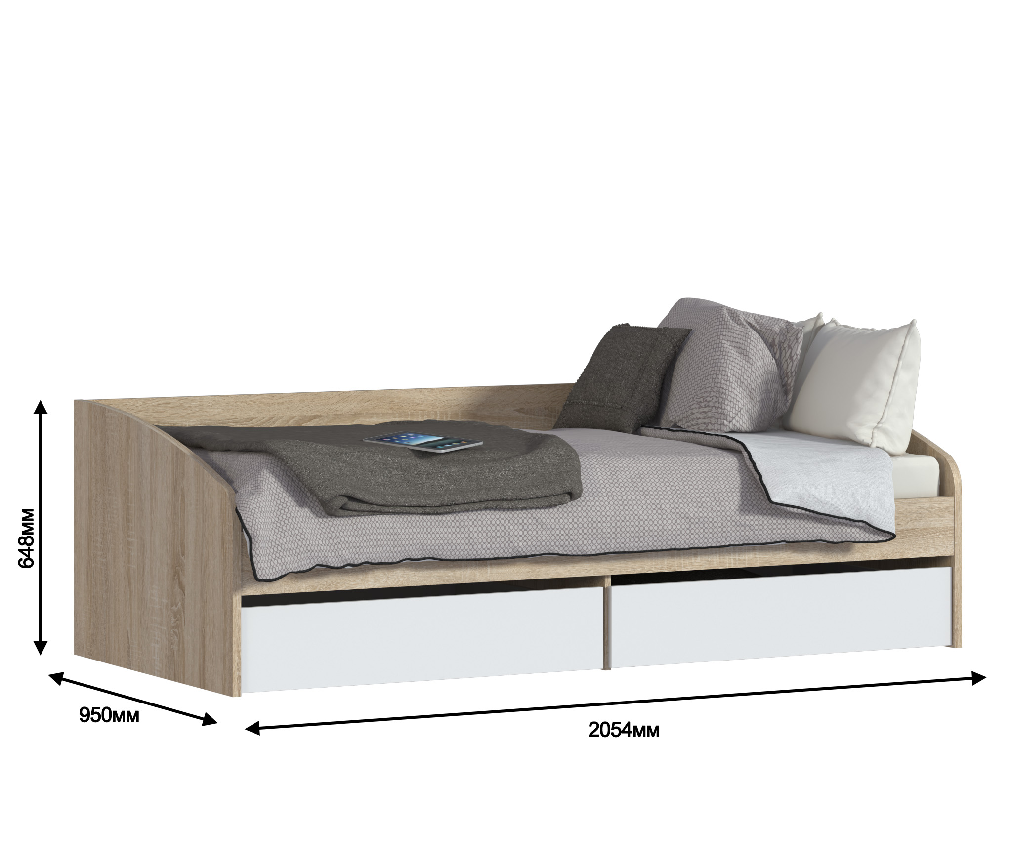 Кровать Мамбо СБ-2372 (Дуб Сонома/Белый)
