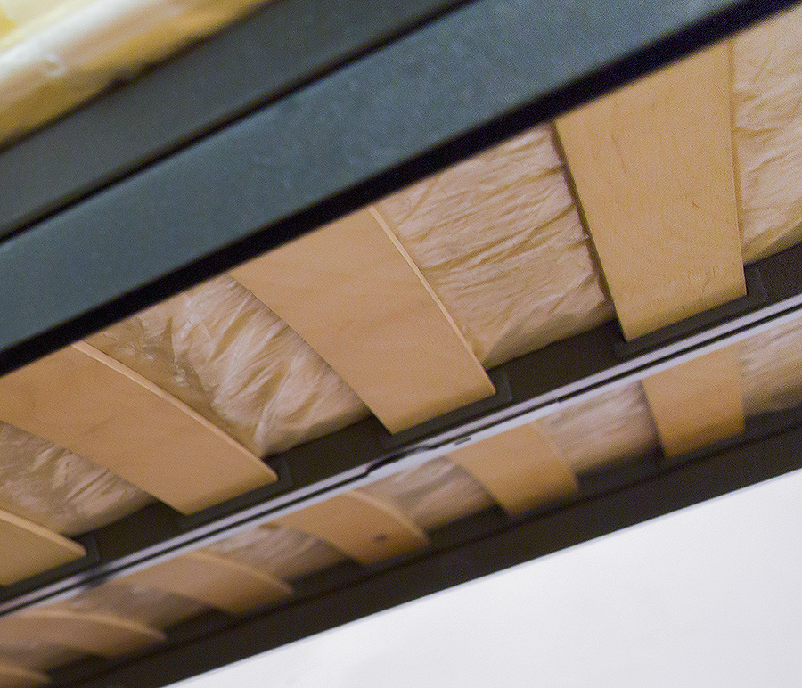 Деревянные перекладины очень хрупкие, одна была треснута и при первом использовании кровати, сев на край она хрустнула и разломилась в щепки, стали осматривать остальные, нашли ещё одну которая похрустывала, но держалась, может из за того что она ближе к середине расположена...расстояние между перекладинами очень большое, что не очень удобно, и как раз это может и есть причина того, что перекладины сильно подвержены нагрузки.