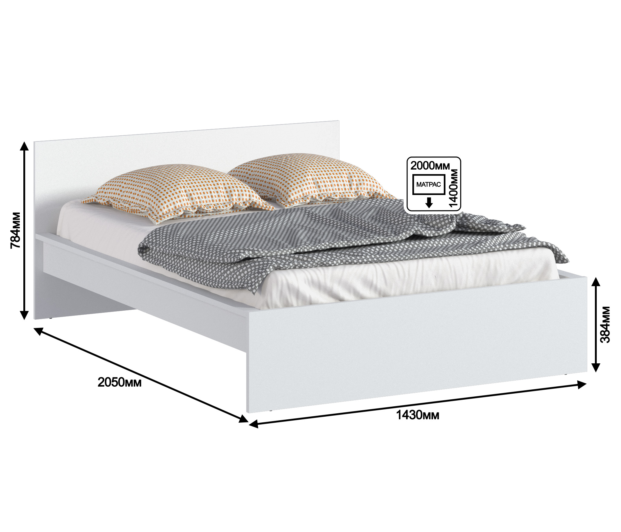 Дополнительно рекомендуем приобрести матрас размером 1400х2000 мм.