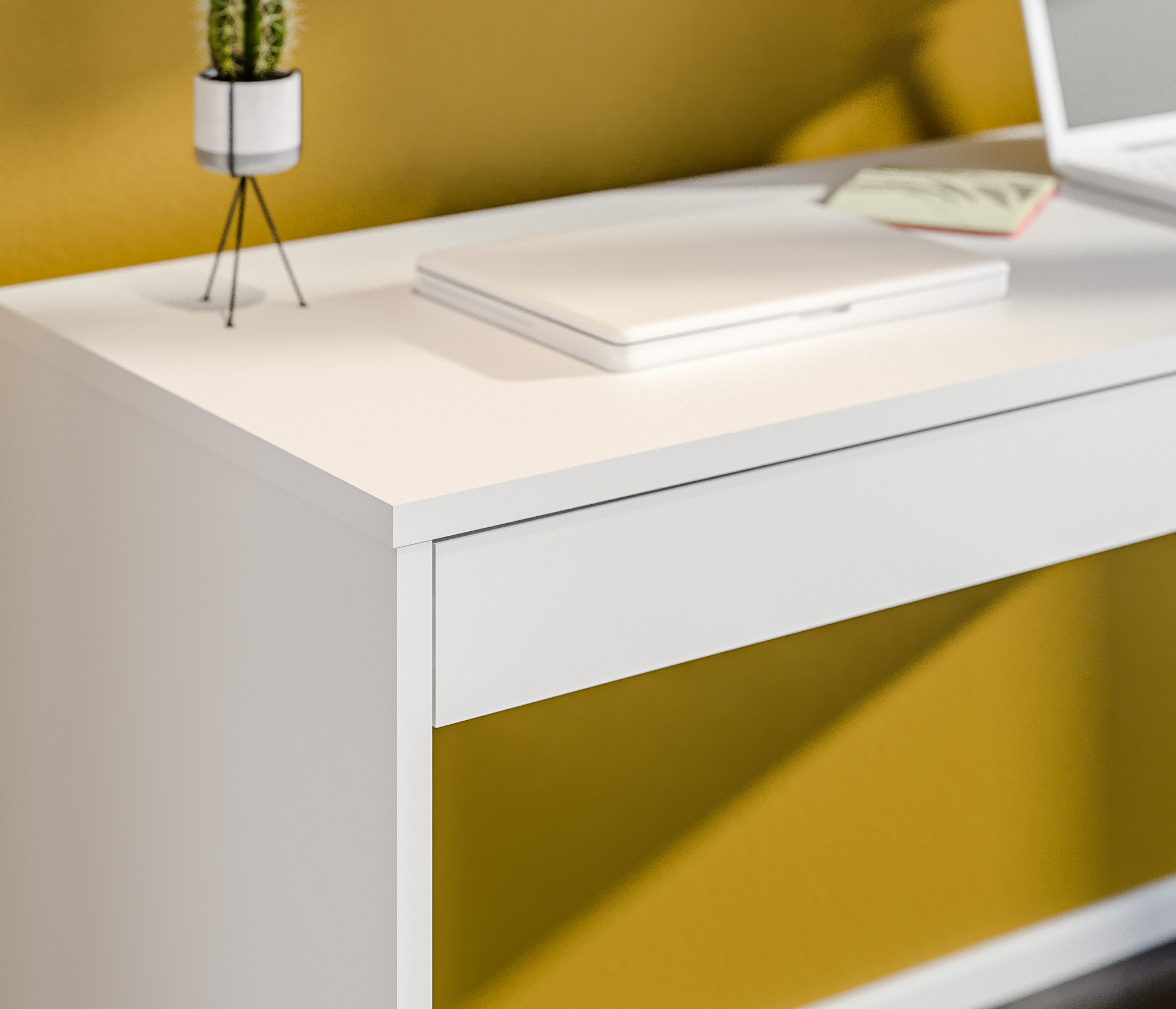 Стол изготовлен из высококачественного ЛДСП белого цвета, этот материал обеспечивает прочность и долговечность стола, а также делает его легким в уходе.