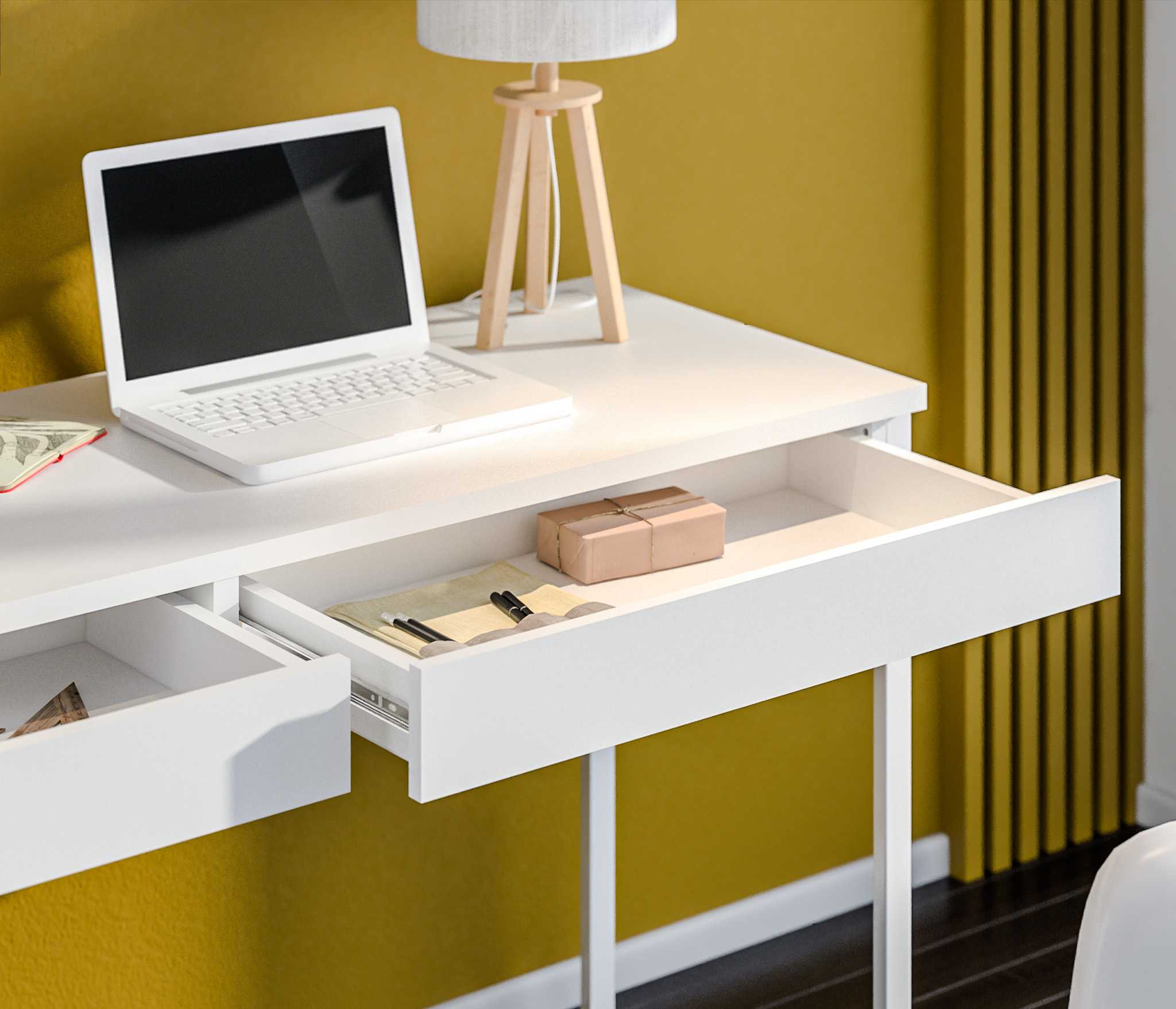 Мика СБ-3310 оборудован двумя ящиками, которые предлагают дополнительное пространство для хранения канцелярских принадлежностей, документов или других необходимых предметов, помогая поддерживать рабочую область в чистоте и порядке.